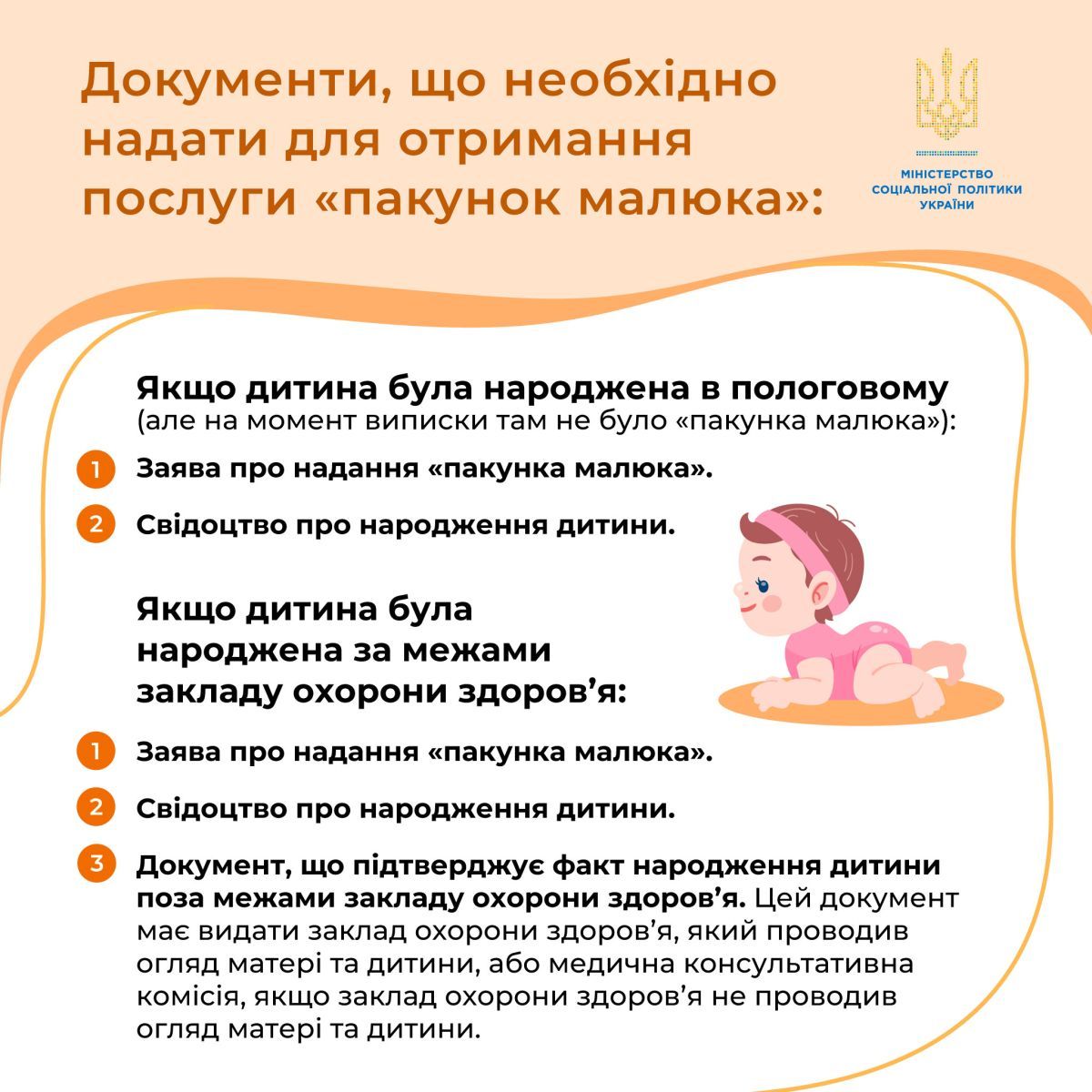 Із 2018 року в Україні діє програма «пакунок малюка», яка надає можливість родинам отримати набір необхідних речей для новонароджених. За ці роки програма постійно вдосконалювалася, — зараз у такому «бебі-боксі» є фактично все, що потрібно дитині в перші місяці життя. За ці п’ять років його розмір збільшився чи не вдвічі – зараз це величезна коробка вагою майже в 16 кг.