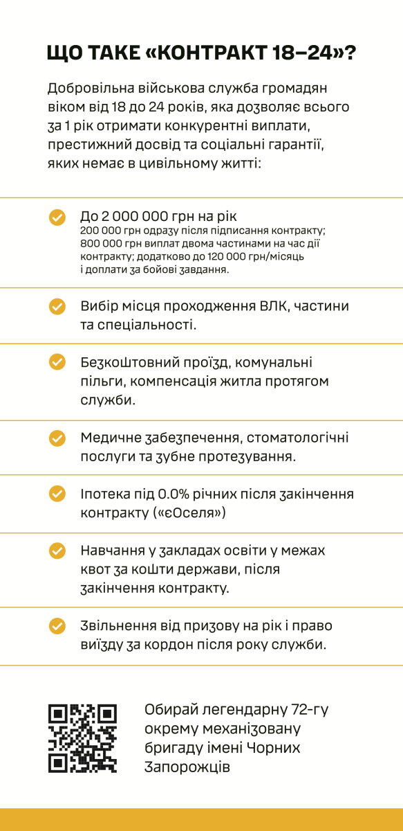 72-га окрема механізована бригада імені Чорних Запорожців запрошує на службу за контрактом