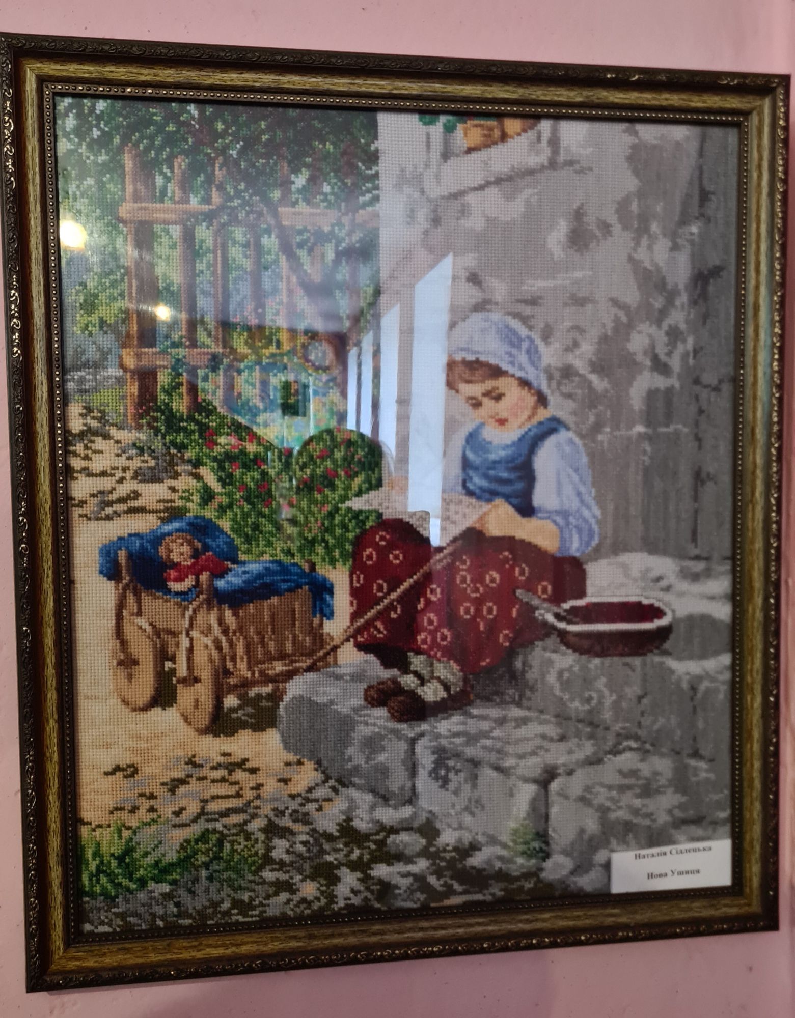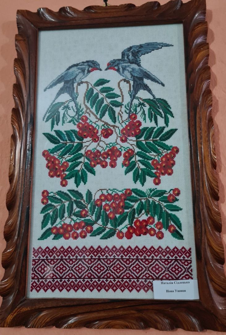 Жителі громади, учні та педагоги Новоушицького ліцею, вихованці та викладачі дитячої школи мистецтв, працівники центральної бібліотеки із захопленням переглядали картини майстрині. Вони вишиті дрібним хрестиком на полотні. Поєднуючи тисячі стібків та сотні відтінків, у руках Наталії оживають квіти, природа, люди та їхні почуття.