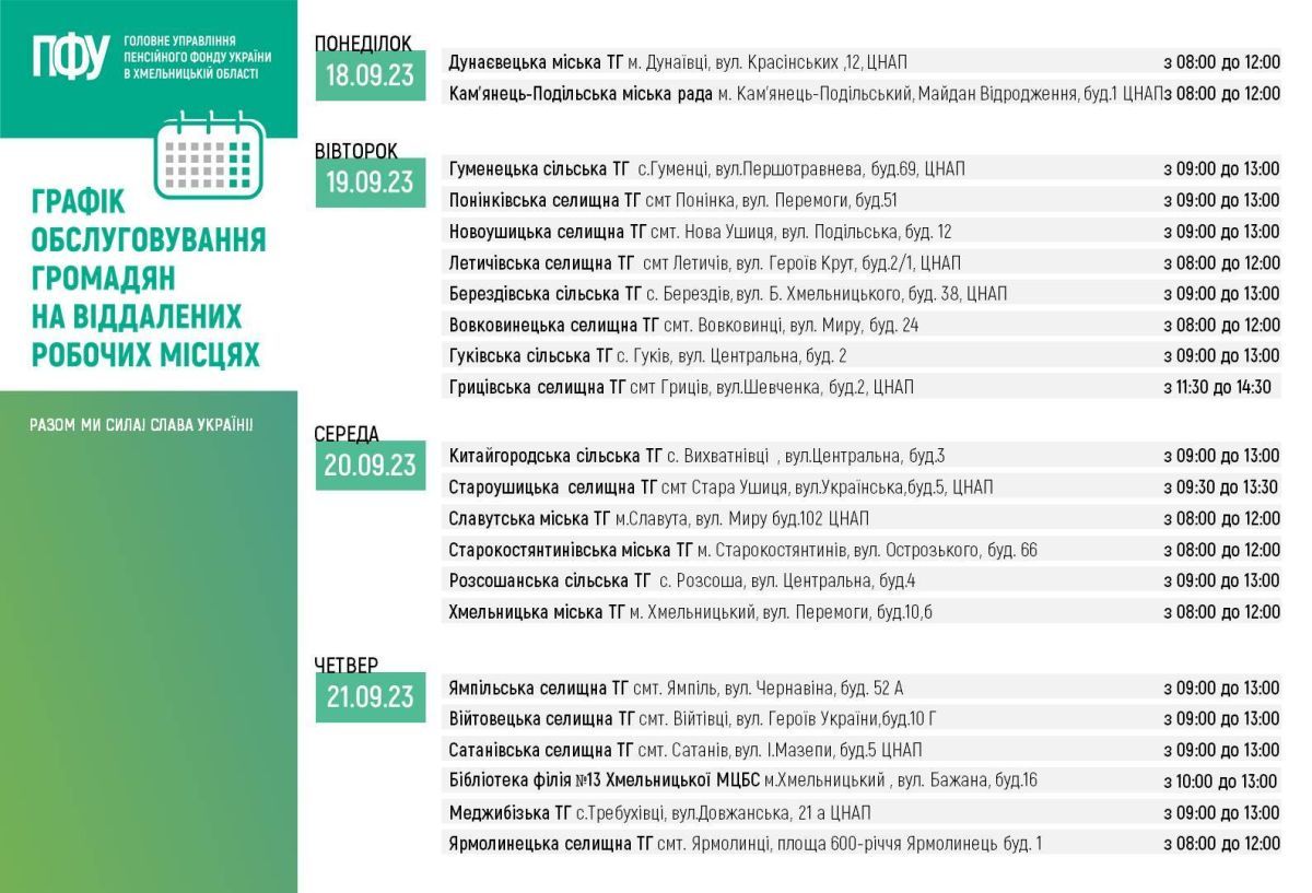 ГУ ПФУ у Хмельницькій області 19 вересня у приміщенні ЦНАПу проводитиме виїзний прийом громадян
