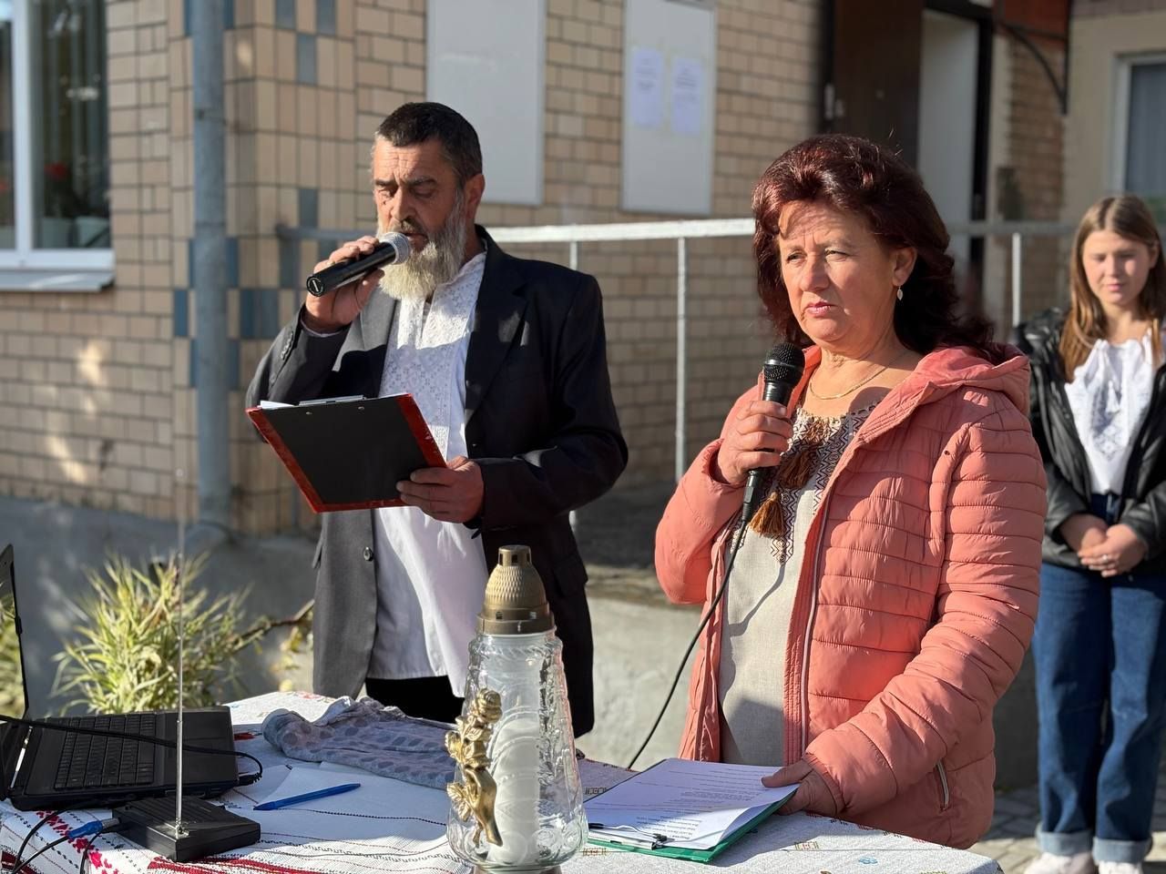 Урочистий мітинг з великою гідністю та щирістю вели Деомид Кулаков та Уляна Газіна. Їхні слова, вірші та інтонації створили особливу атмосферу пошани й духовного піднесення.