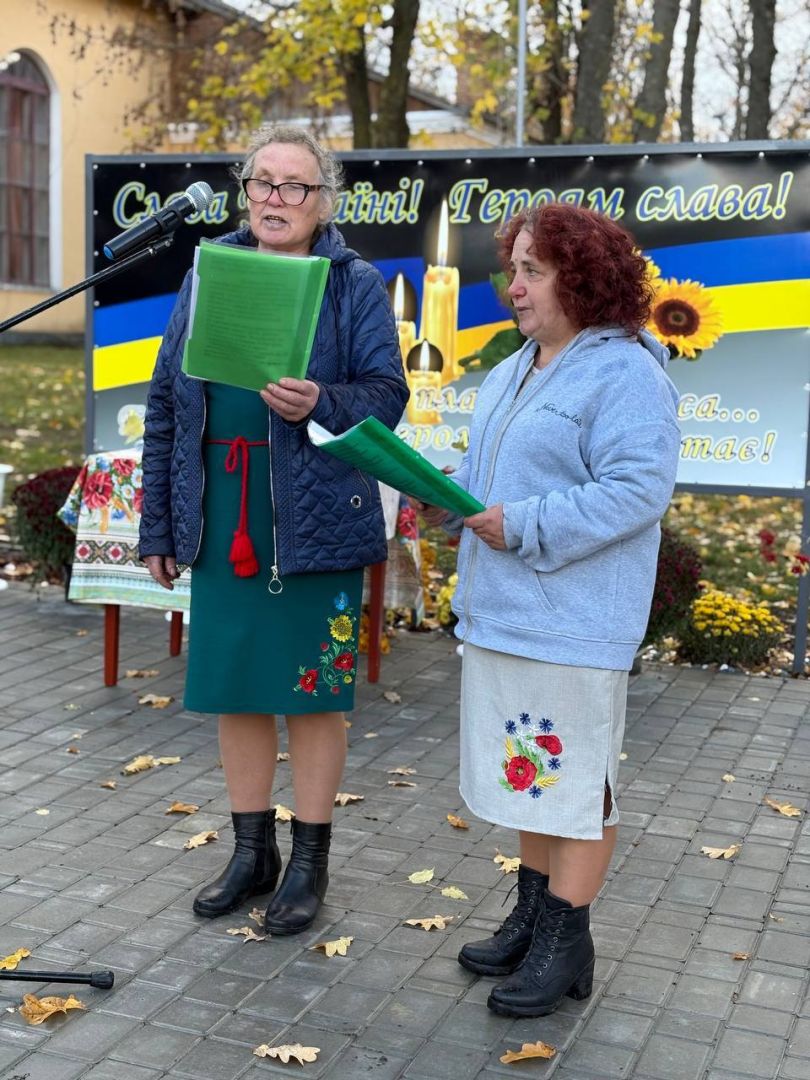 Біографії Героїв зачитували Ніна Кушнір та Надія Сухарьова, кожне слово яких нагадувало, що вони жили серед нас — мріяли, любили, допомагали іншим, а потім пішли у вічність заради України.