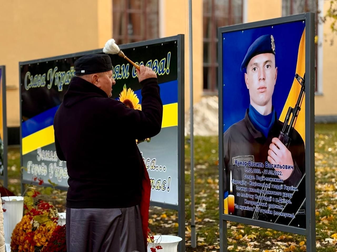 Отець Володимир освятив пам’ятні зображення загиблих воїнів та відслужив заупокійну панахиду.