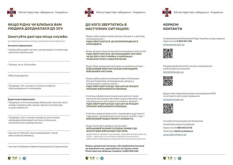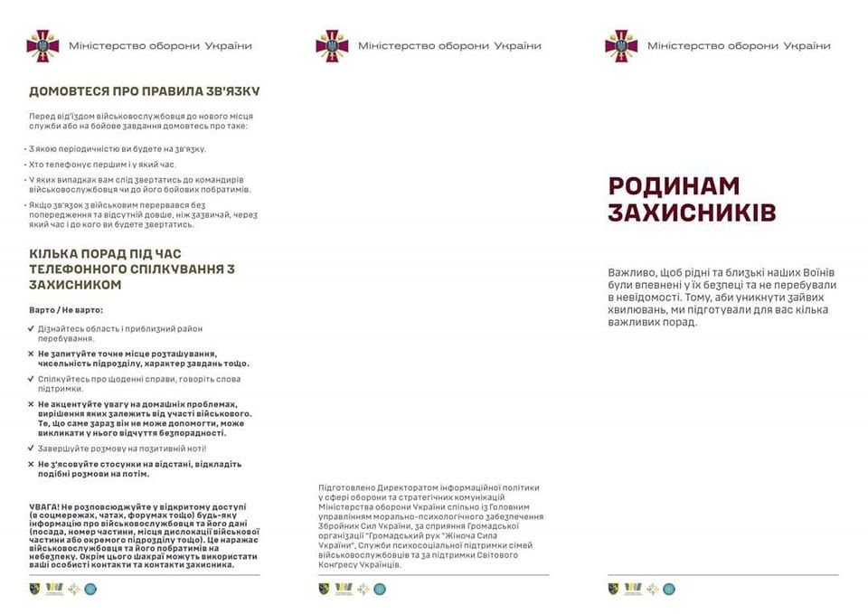 Інформаційна брошура Міністерства оборони України "Родинам захисників"