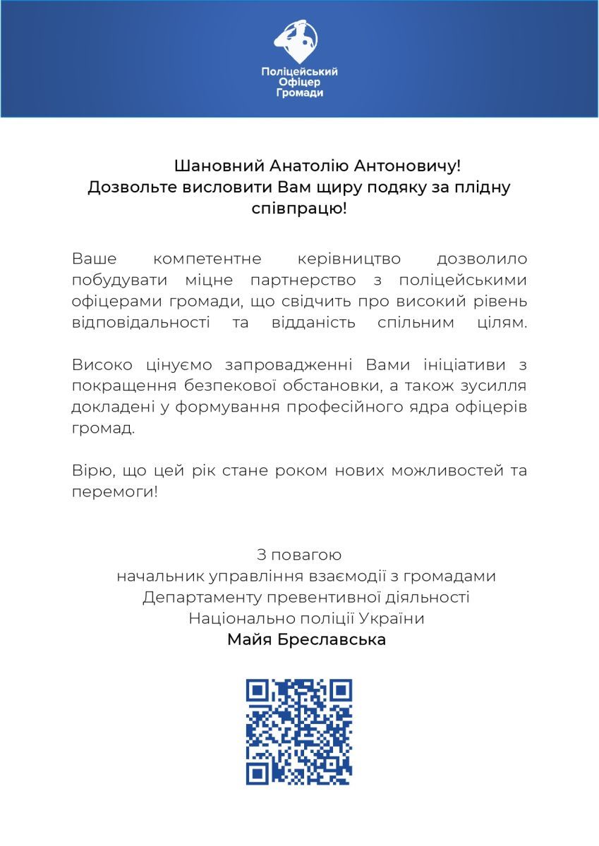 Подяка за співпрацю з поліцейськими офіцерами громад