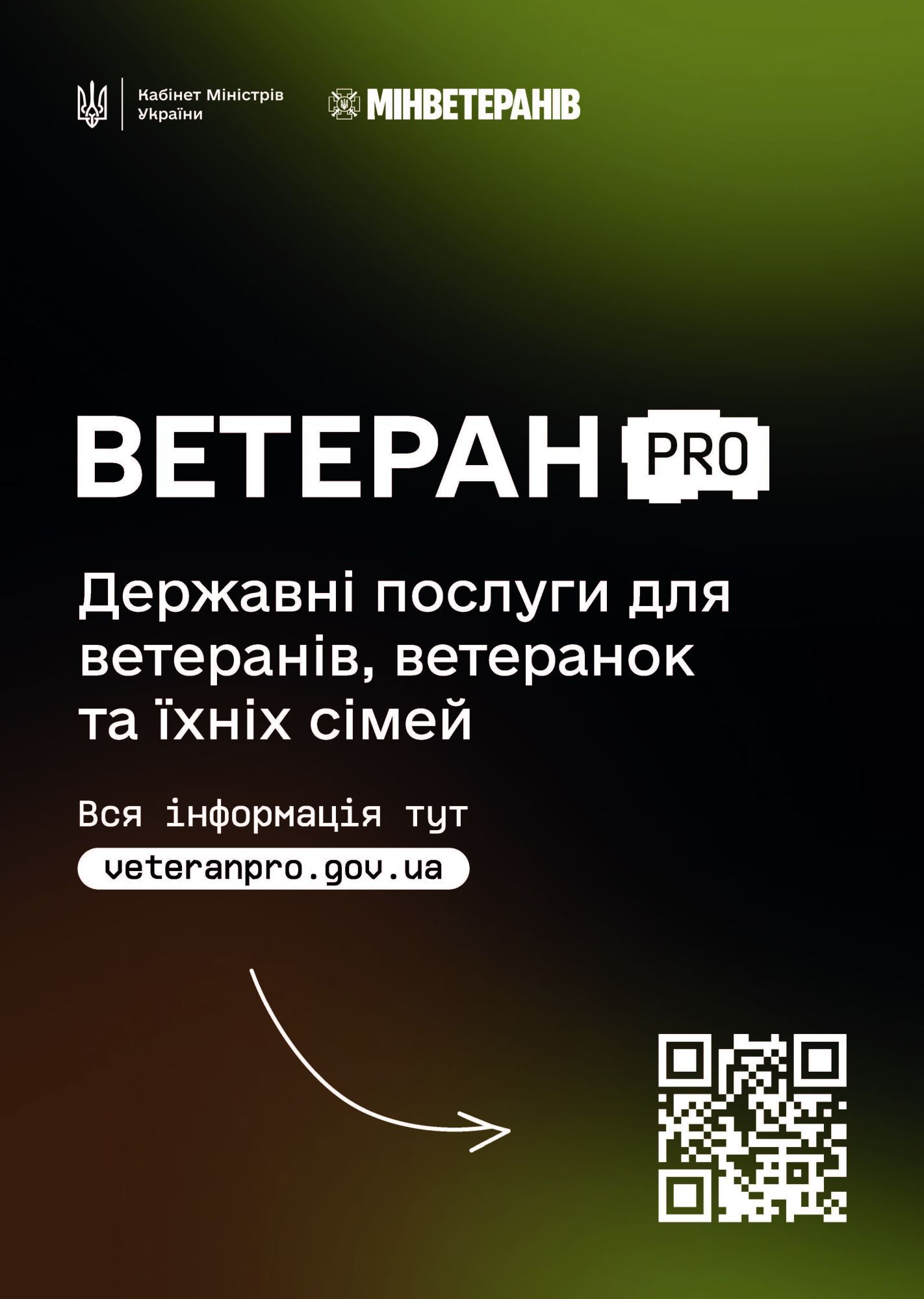 Уряд України на виконання доручення Президента України представив Ветеран PRO – державну цифрову платформу для ветеранів, ветеранок і їхніх родин, де зібрано всю інформацію про пільги, програми, послуги та можливості в одному місці. Проєкт реалізовано Міністерством у справах ветеранів України.