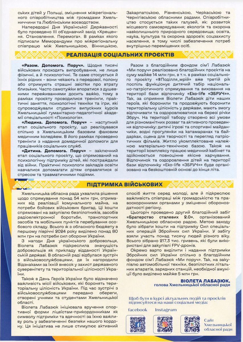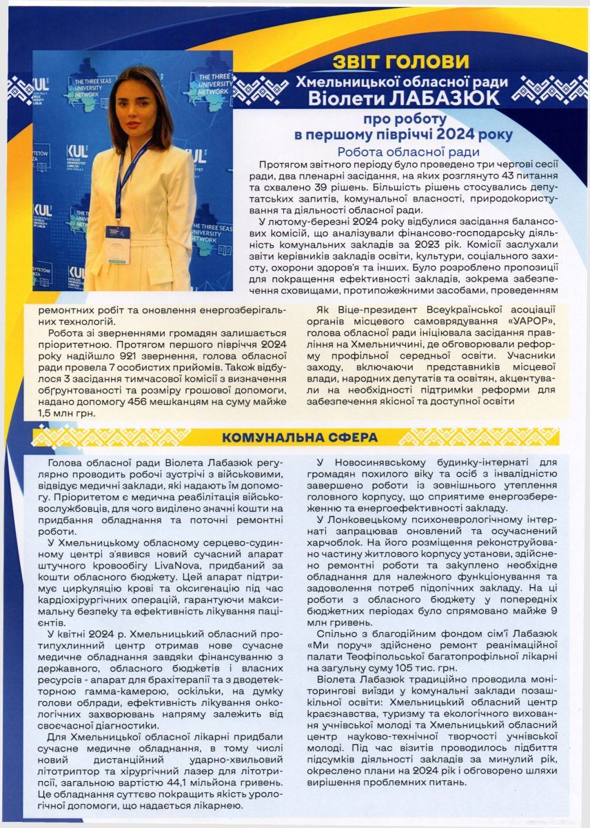 Звіт про діяльність голови обласної ради Віолети ЛАБАЗЮК та депутатського корпусу обласної ради у I півріччі 2024 року